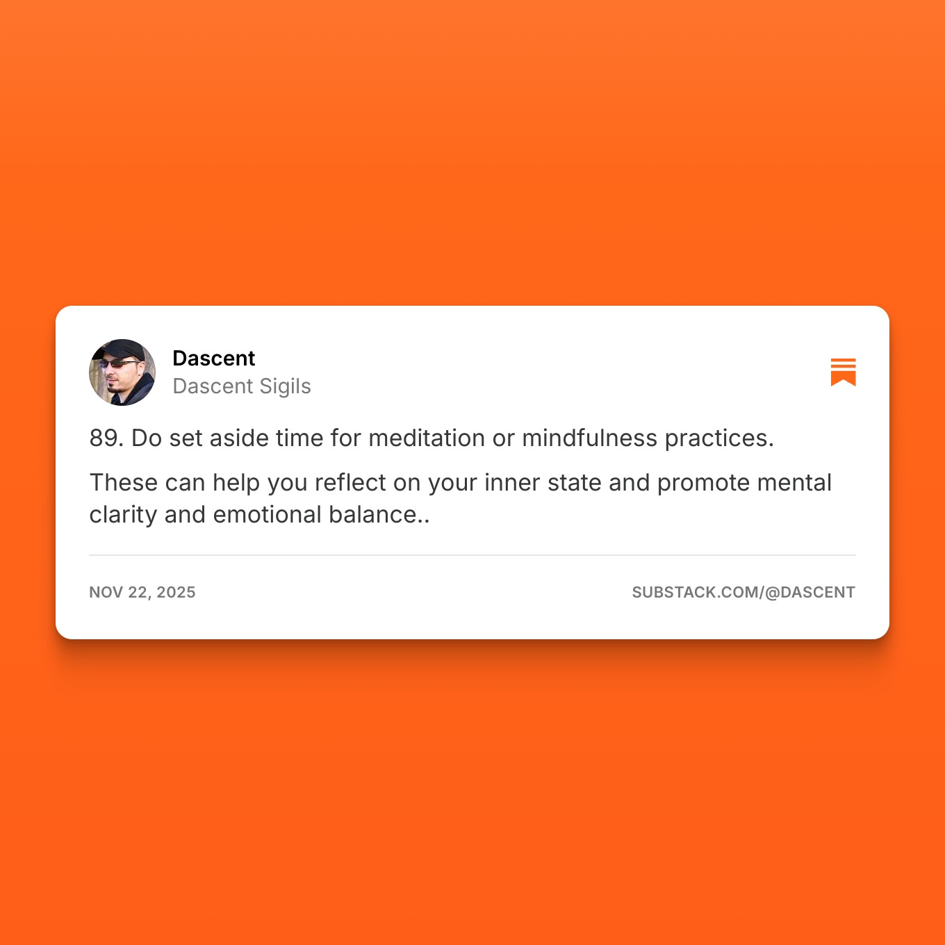 Dascent PerspectiveQuote 89๐ข Subscribe, share, comment, because it might be the quote which changes someone's lifeDascentDec 01, 20252Share89. Do set aside time for meditation or mindfulness practices. These can help you reflect on your inner state and promote mental clarity and emotional balance.SubscribeRefer a friendPreviousNext